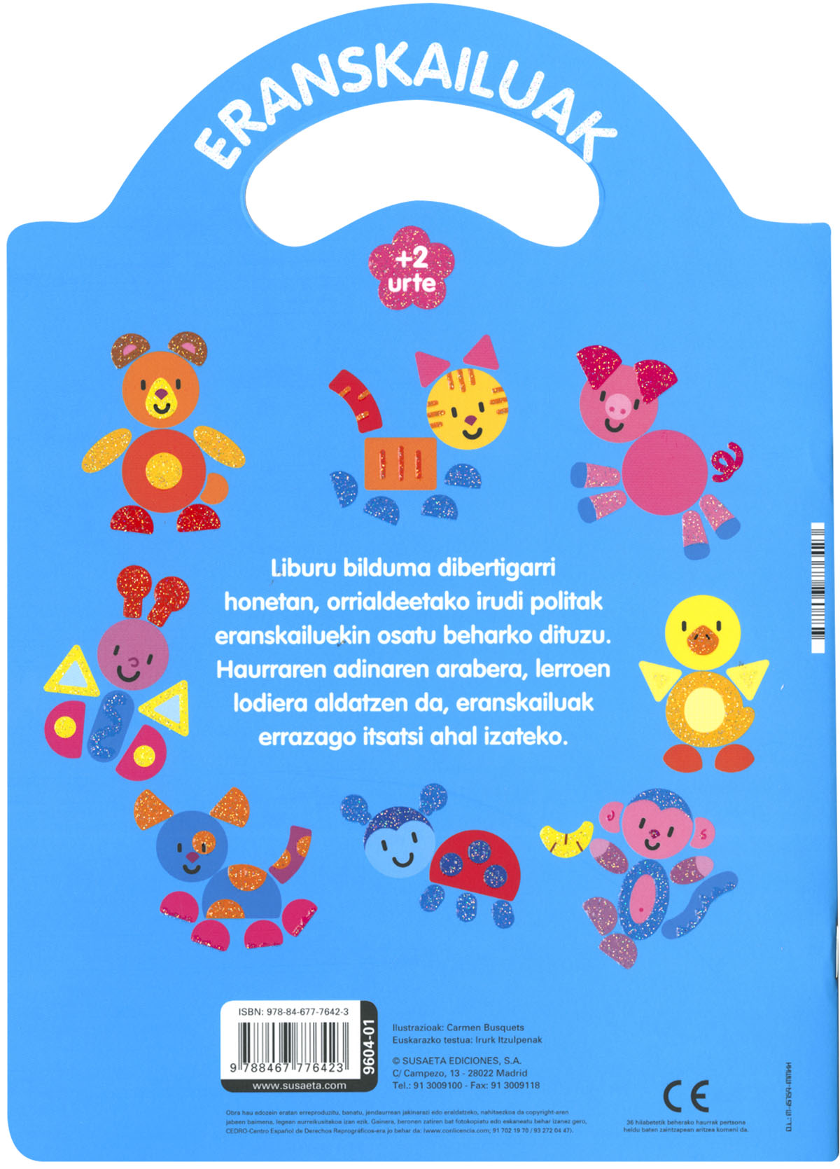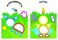 Liburu bilduma dibertigarri honetan, orrialdeetako irudi politak eranskailuekin osatu beharko dituzu. Haurraren adinaren arabera, lerroen lodiera aldatzen da, eranskailuak errazago itsatsi ahal izateko.