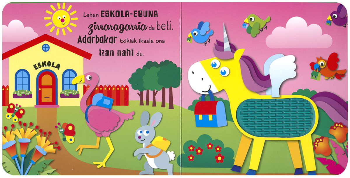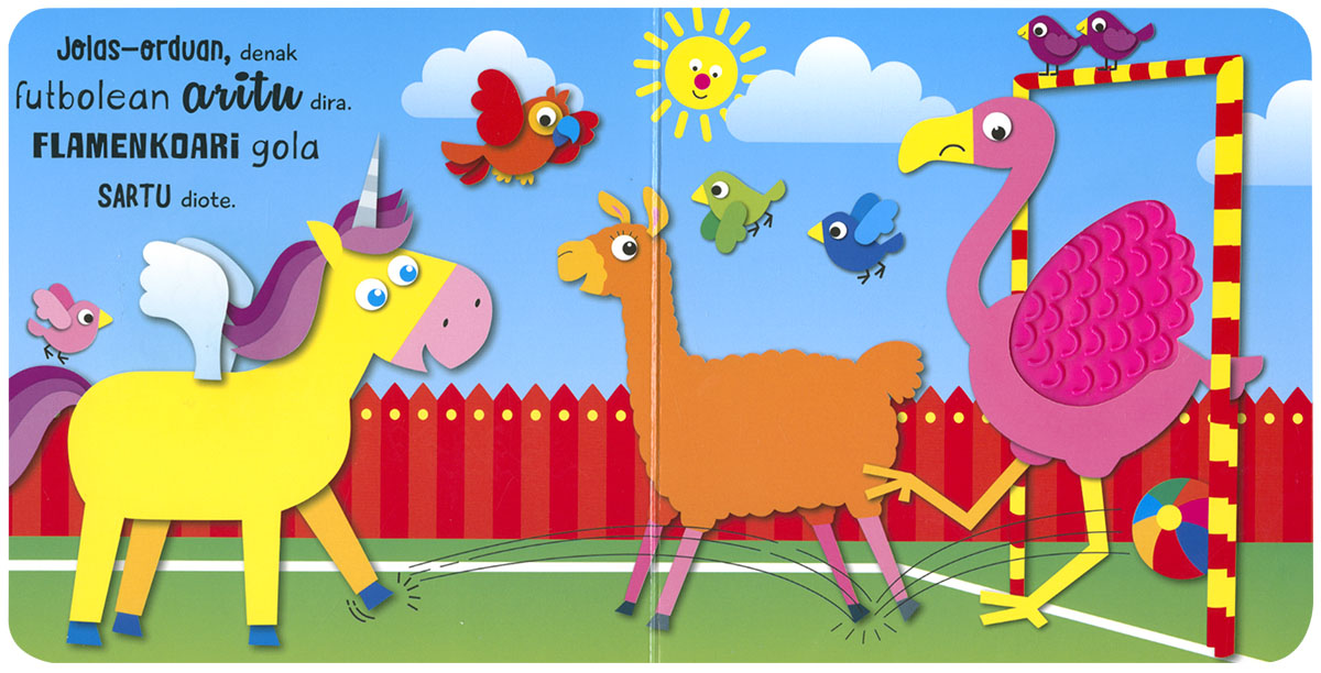 Ukitu zure animalia gogokoenak. Zer sentitzen duzu? Adarbakarrak eta llamak ukitu bera al dute? Liburu honek errima jatorrak eta ehundura deigarriak ditu, testura berriak hautemanez ondo pasatzeko.
