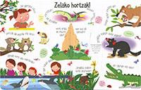 Liburu honen hegalak zabalduz gero, inoiz zeure buruari egingo zenizkion animalien munduari buruzko galdera askoren erantzunak topatuko dituzu. Harritu zaitez eta ikasi zergatik diren arrosak flamenkoak, zenbat hortz dituzten marrazoek, zergatik dauden kaktusak basamortuan eta askoz kontu gehiago.