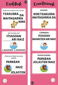 Azala:  Caja con 46 tarjetas de cartulina plastificada mate unidas con una chincheta de plástico