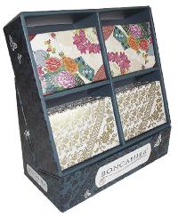 Expositor con 16 ejemplares surtidos de cajas con tarjetas y sobres para acompañar a un regalo, dar las gracias, saludar o simplemente recordar nuestra amistad a las personas que queremos.