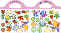 Encuadernación:  Cartulina plastificada mate con purpurina y troquelada con forma de asa, interior con pegatinas