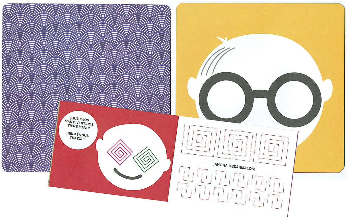 Encuadernación:  Sobre de cartulina plastificada con 1 cuaderno de actividades, 12 láminas y 1 plantilla