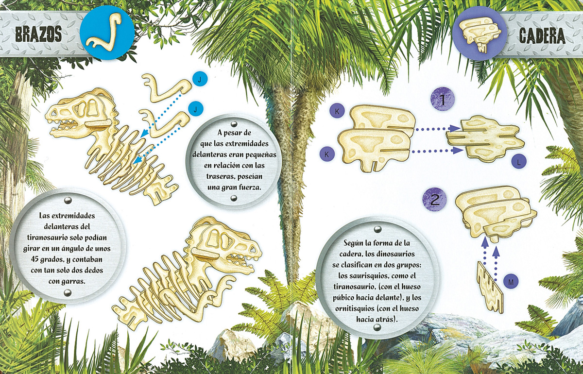 Viaja a la época prehistórica, cuando los dinosaurios poblaban la Tierra, y construye tu propio tiranosaurio con las 44 piezas que encontrarás dentro del libro. Con las instrucciones, ¡es muy fácil de montar!