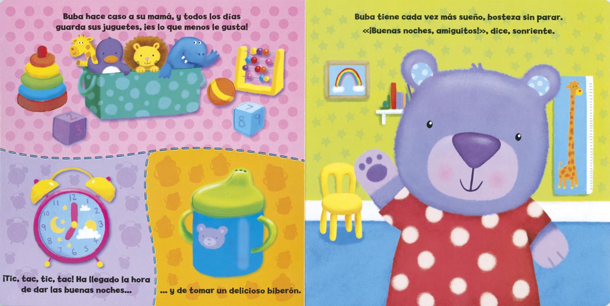 Te presentamos este precioso libro interactivo con el que los más pequeños podrán descubrir y sentir texturas y formas con sus deditos. ¡Acompaña a Buba mientras se prepara para ir a la cama!