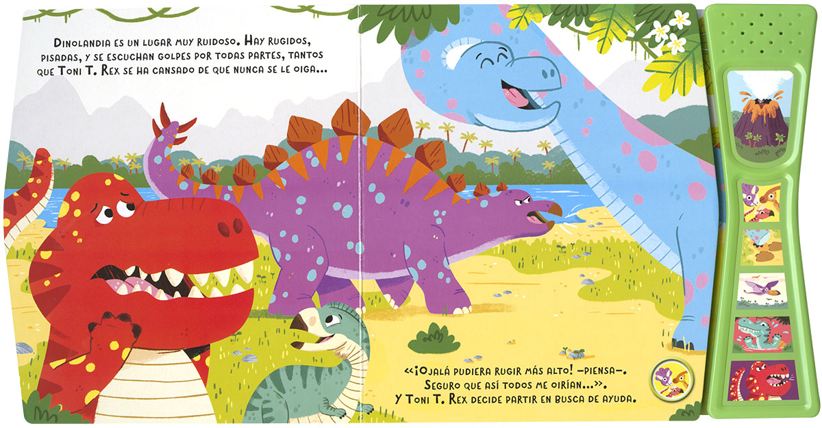 Acompaña a Toni T. rex en su viaje por la selva tratando de convertirse en el dinosaurio más ruidoso de todos.Con 6 sonidos de dinosaurios, este es el libro perfecto para lectores con una gran imaginación.