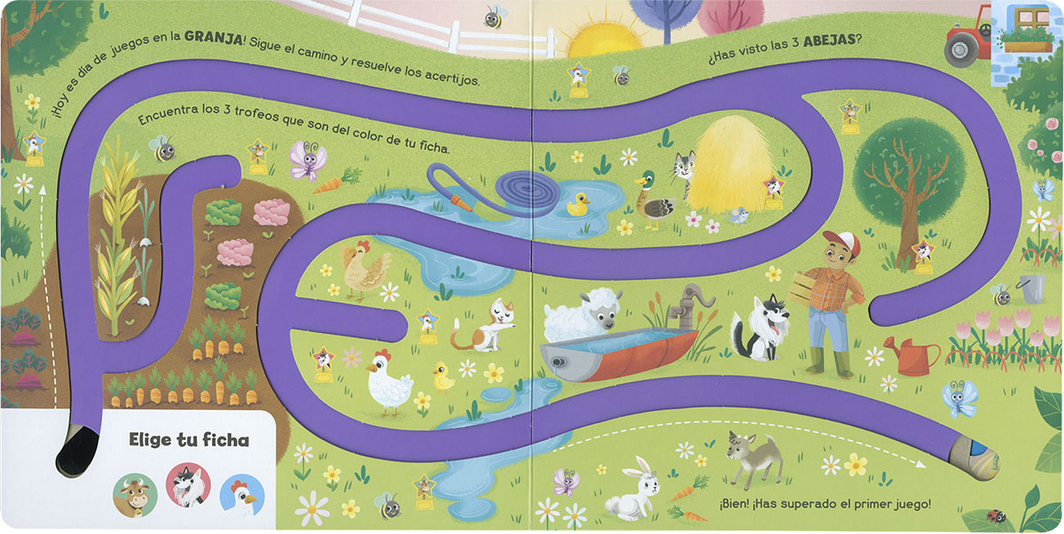Elige un personaje y prepárate para disfrutar de los juegos de esta granja. Con un laberinto diferente en cada página y acertijos para encontrar, contar y descubrir, este libro de cartoón con divertidas ilustraciones es perfecto para estimular y entretener a los más pequeños.