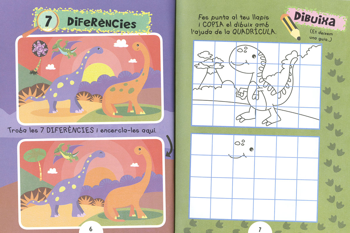 Laberints, dibuixos per a pintar, puzles, siluetes... En aquest llibre trobaràs divertides activitats amb dinosaures. També hi ha adhesius bombolla que podràs col·locar on vulguis.