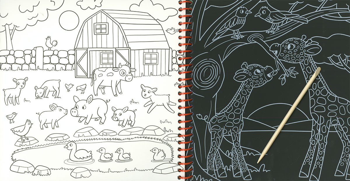Disfruta de un momento creativo y colorido con este genial libro. Contiene escenas de animales para colorear y láminas para rascar y sacar los colores. Además, incluye un buril de madera para que puedas empezar cuanto antes.