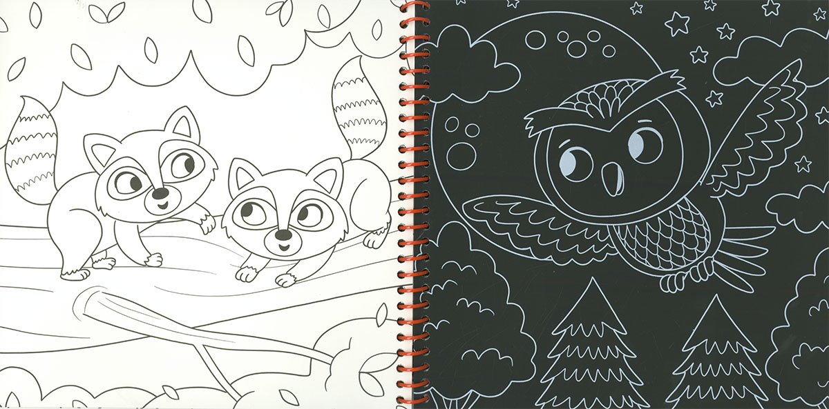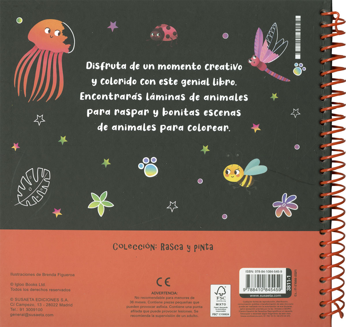Encuadernación:  Espiral de tapa dura. Acabado mate, troquelado con figura de plástico. Buril y páginas de rascar.
