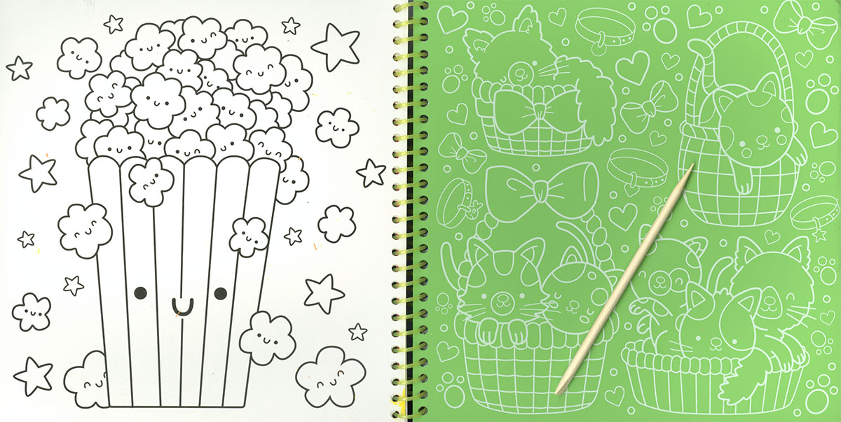 Disfruta de un momento creativo y colorido con este genial libro. Contiene dibujos para colorear y láminas para rascar y sacar los colores. Además, incluye un buril de madera para que puedas empezar cuanto antes.