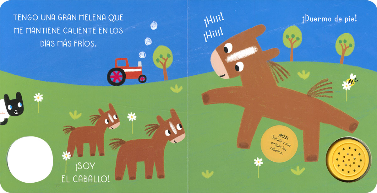La oveja tiene muchos amigos. Uno tiene una gran melena; otro tiene un esupendo olfato... Descubre quién es quién y escucha a la oveja pulsando el botón de sonido de este simpático libro de cartón.