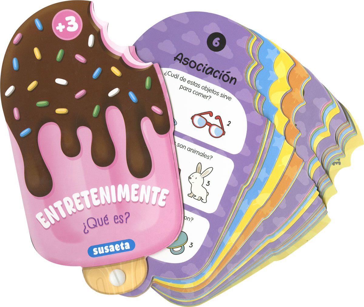Diviértete y aprende! En cada ficha aparecen dibujos sencillos con preguntas adecuadas para los más pequeños. Tratan sobre colores, formas, sonidos y otras percepciones de la vida cotidiana que el niño está aprendiendo en esta etapa. El juego consiste en mostrarles estas imágenes y hacerles preguntas sencillas que disfrutarán contestando y señalando con sus deditos. Además, podrán ver la respuesta en la parte trasera de cada ficha.
