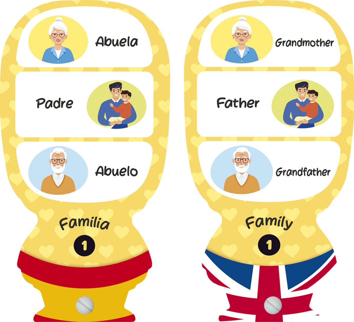 Diviértete y aprende! En cada ficha aparecen dibujos sencillos junto a la palabra que los define en español a su lado.En el reverso de cada ficha aparecen los mismos dibujos y la traducción de la palabra en inglés. El juego consiste en mostrar a los niños las imágenes y preguntarles su nombre en inglés. Es una manera efectiva de ir aprendiendo palabras y añadiendo vocabulario a sus conocimientos.