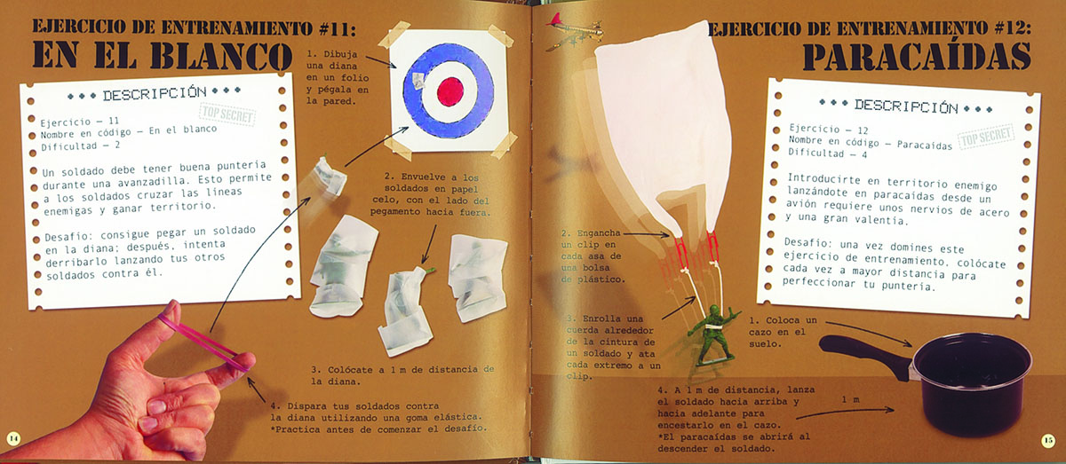 Encuadernación:  Cartoné con cubierta plastificada + componentes: soldados de juguete