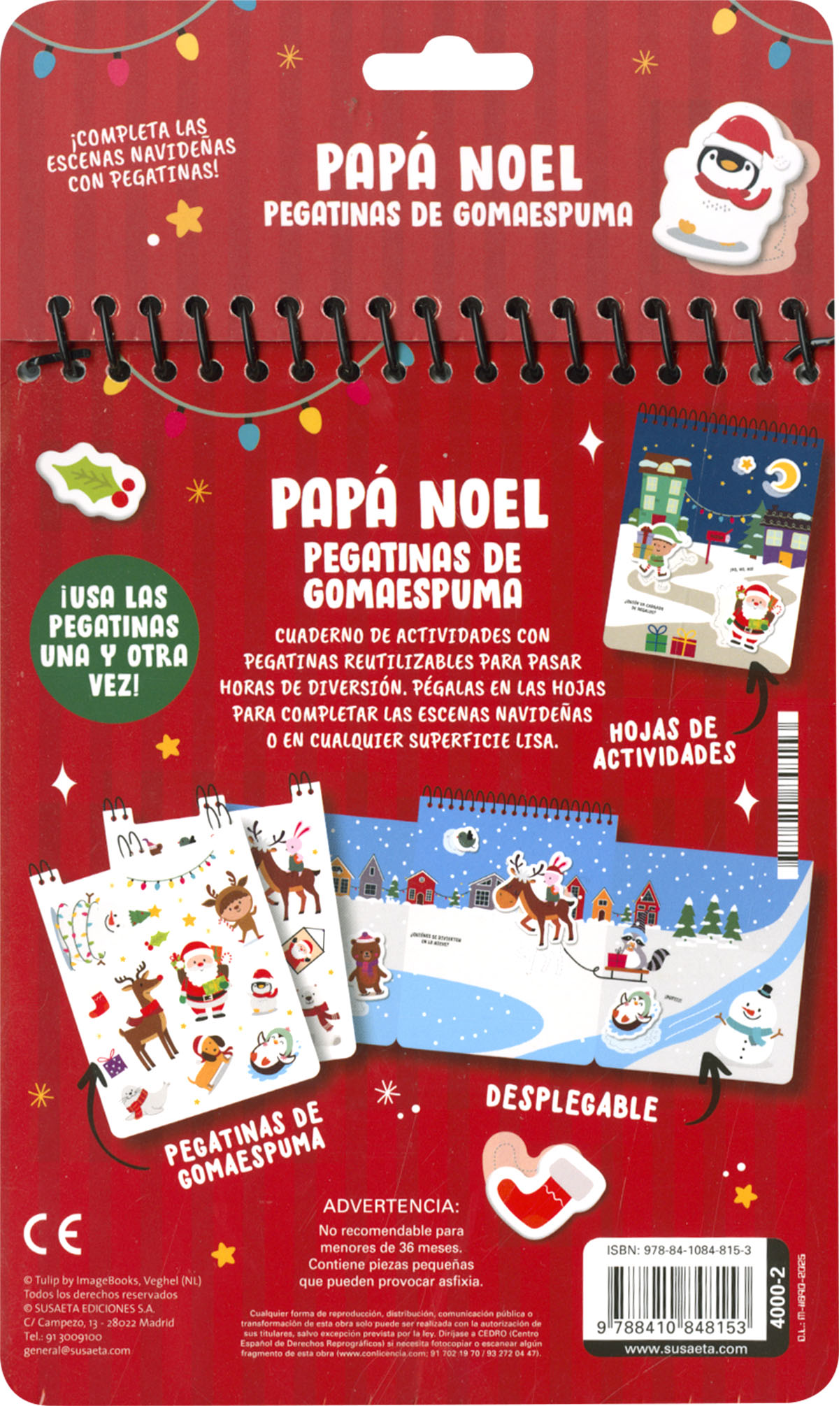 Cuaderno de actividades con pegatinas de gomaespuma reutilizables para pasar horas de diversión. Pégalas en las hojas para completar las escenas navideñas o en cualquier superficie lisa.