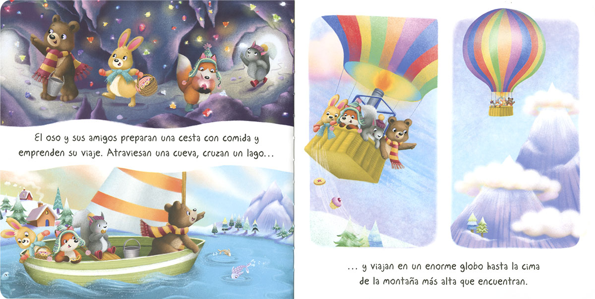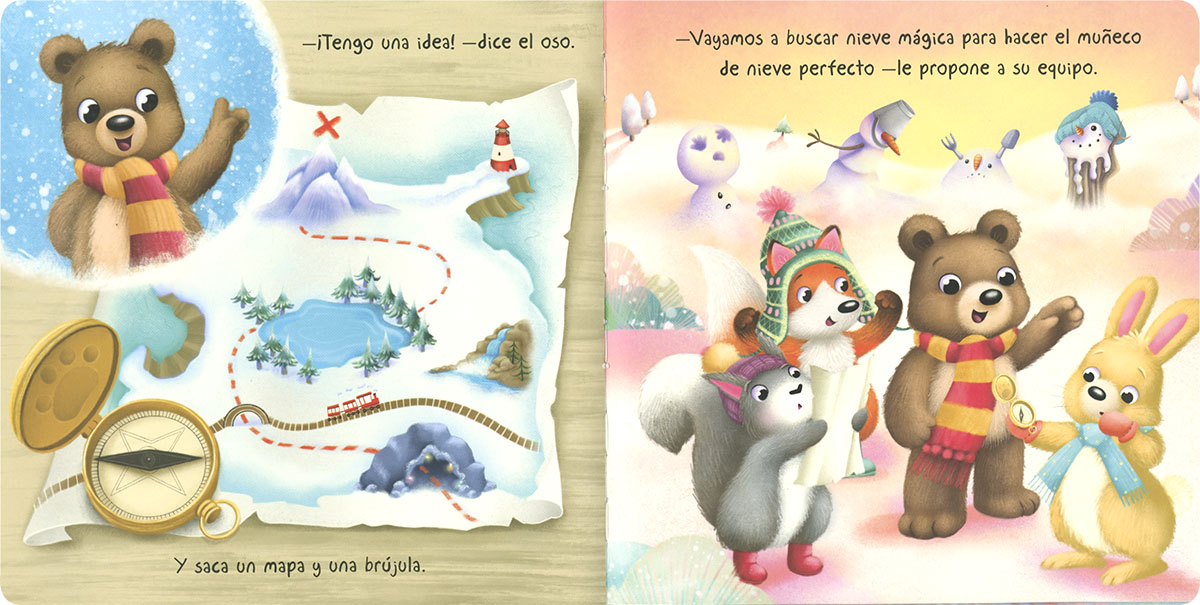 El oso y sus amigos se van a presentar a un concurso de muñecos de nieve. ¿Quién ganará? ¡Abre el libro para descubrirlo! Con una cubierta acolchada y un bolsillo de gel con brillantes copos de nieve, este libro te trasladará inmediatamente al interior del cuento. ¡Vive la Navidad con el muñeco de nieve!
