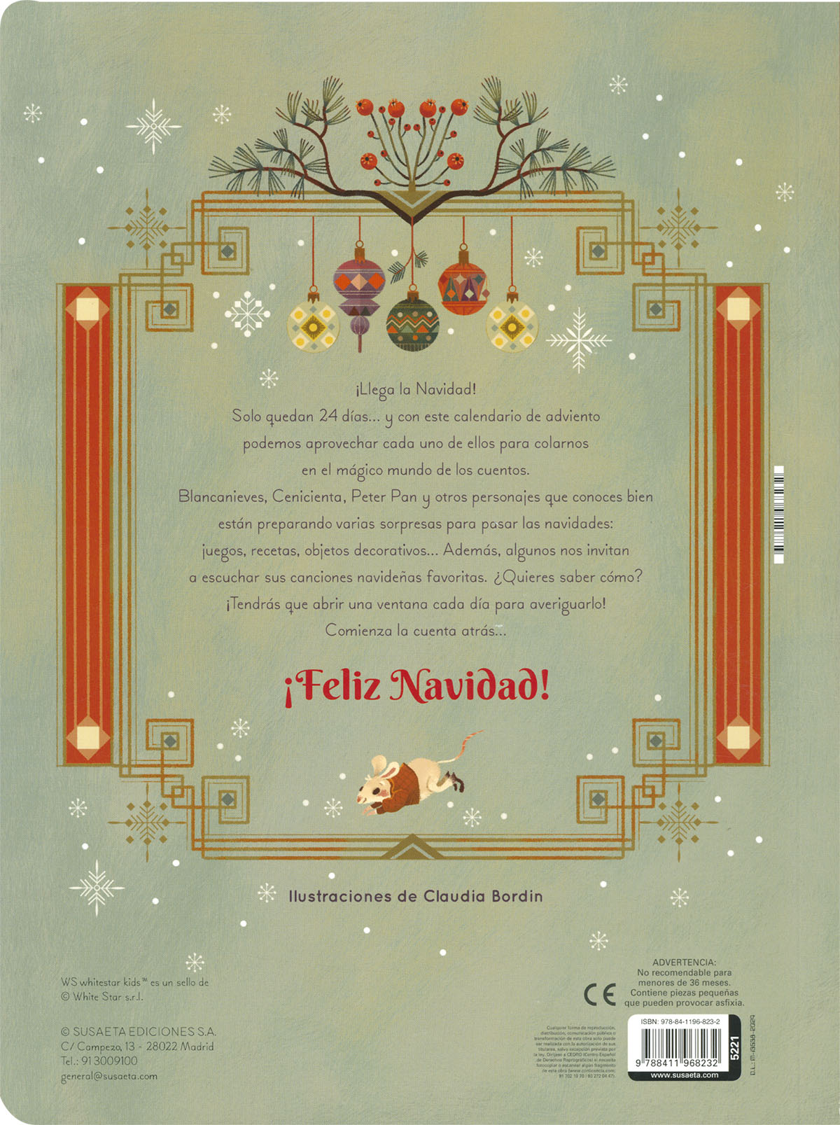 Llega la Navidad! Solo quedan 24 días... y con este calendario de adviento podemos aprovechar cada uno de ellos para colarnos en el mágico mundo de los cuentos. Blancanieves, Cenicienta, Peter Pan y otros personajes que conoces bien están preparando varias sorpresas para pasar las navidades: juegos, recetas, objetos decorativos... Además, algunos nos invitan a escuchar sus canciones navideñas favoritsa en Spotify: solo tienes que escanear el gráfico que encontrarás en las solapas. ¡Pero no las abras todas! Tendrás que abrir una por cada día del calendario. ¡Feliz Navidad!