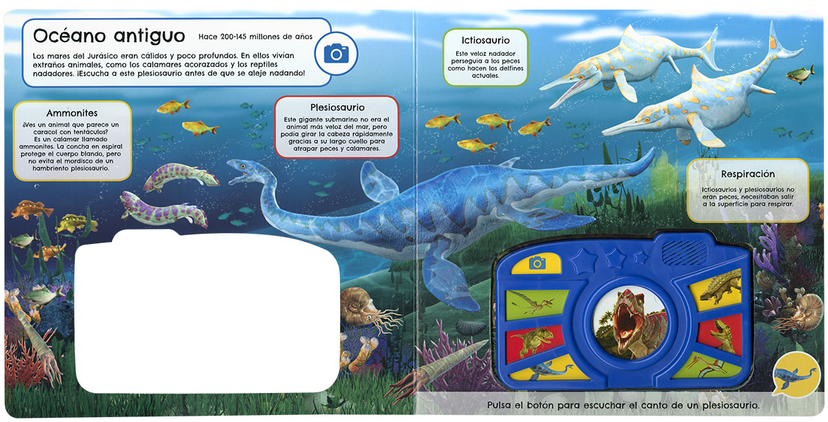 Encuadernación:  Cartoné con cubierta plast. mate y brillo troquelado int. hojas de cartón con 7 pulsadores sonoros