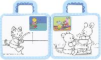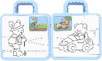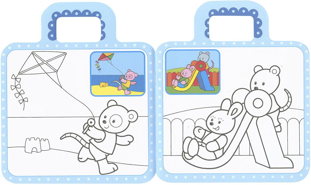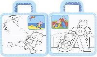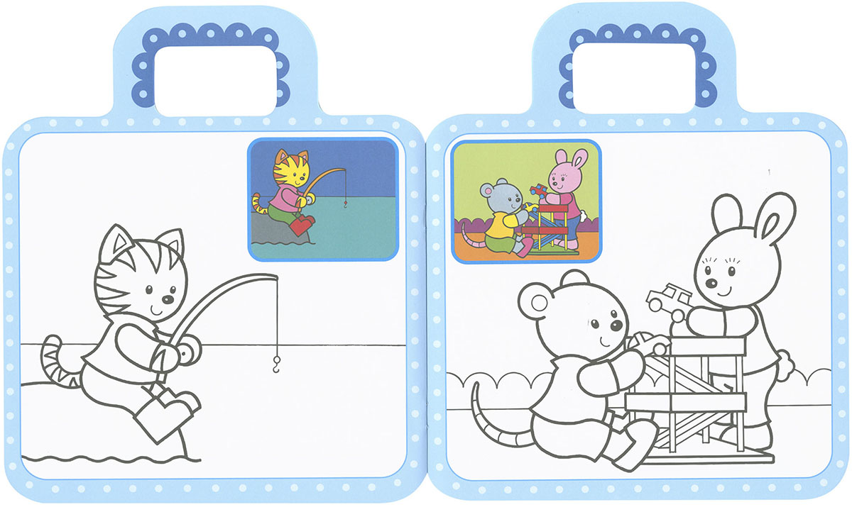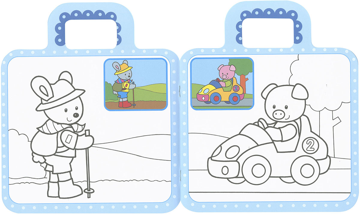 Abre tu libro en forma de maleta y llena sus páginas de color; después, decóralas con las pegatinas: ¡tienes un montón para elegir!