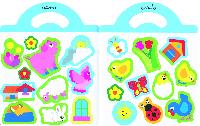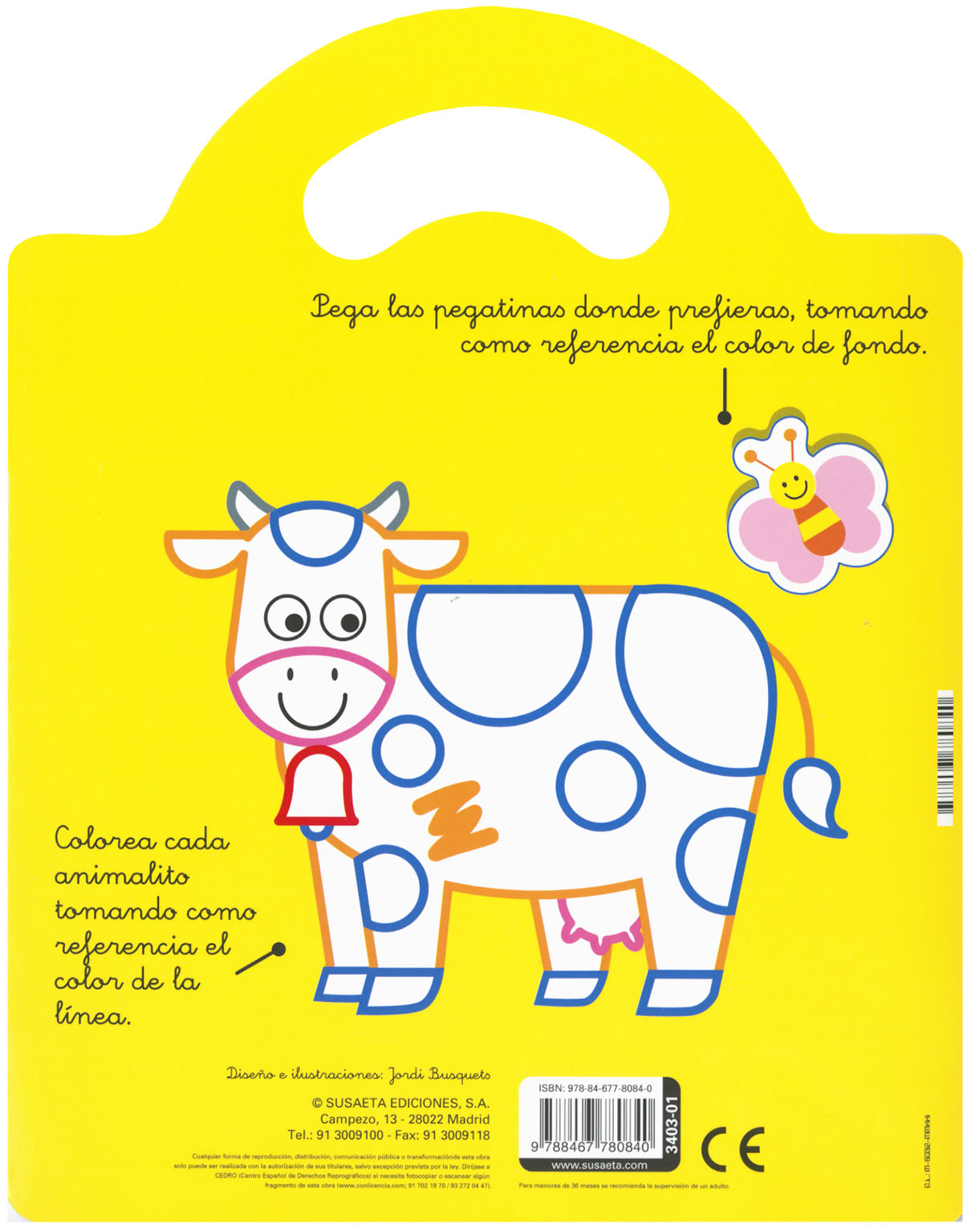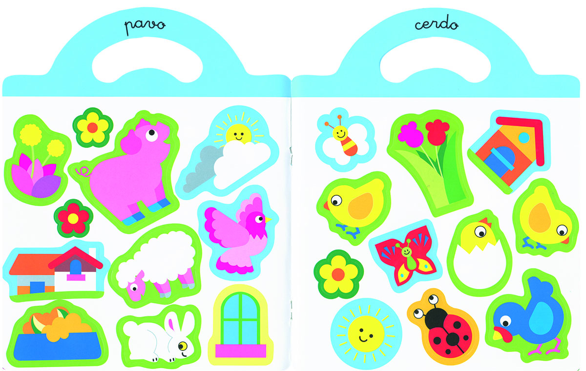 Encuadernación:  Cartulina plastificada brillo y troquelada con asa, interior con pegatinas