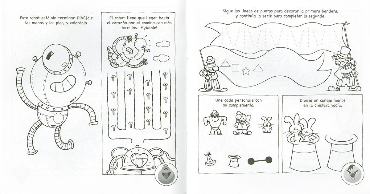 Completa los juegos de cada página y pega el emoticono que mejor describa cómo te lo has pasado. ¡Puedes jugar también con las pegatinas que sobran!
