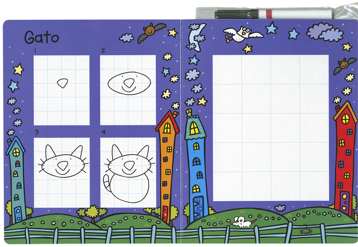 Aprende a dibujar tus mascotas preferidas con este simpático libro, que además incluye un rotulador. No pasa nada si te equivocas: puedes borrarlo y volver a empezar. ¡Ya verás qué divertido es!