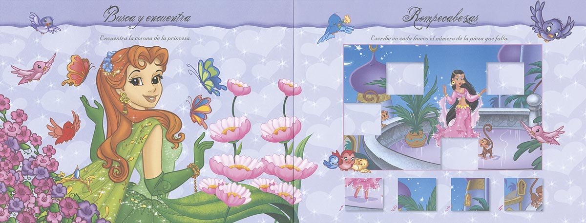 Un precioso estuche con forma de maletita que incluye pegatinas, actividades, láminas para colorear y decorados para componer escenas a tu gusto con tus princesas preferidas.