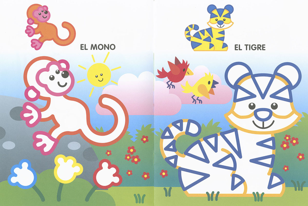 Libros de colorear para los más pequeños, con divertidos dibujos de trazo grueso y colores básicos. Perros, gatos, conejos, dinosaurios, elefantes, loros..., los animales más conocidos y queridos para que los niños disfruten coloreando.