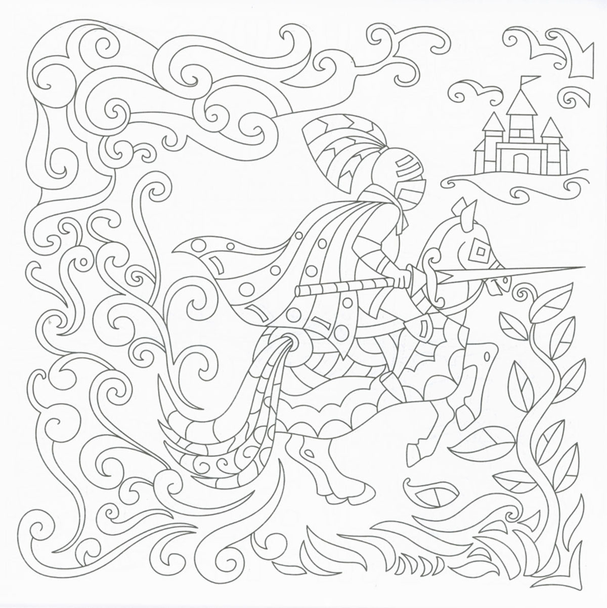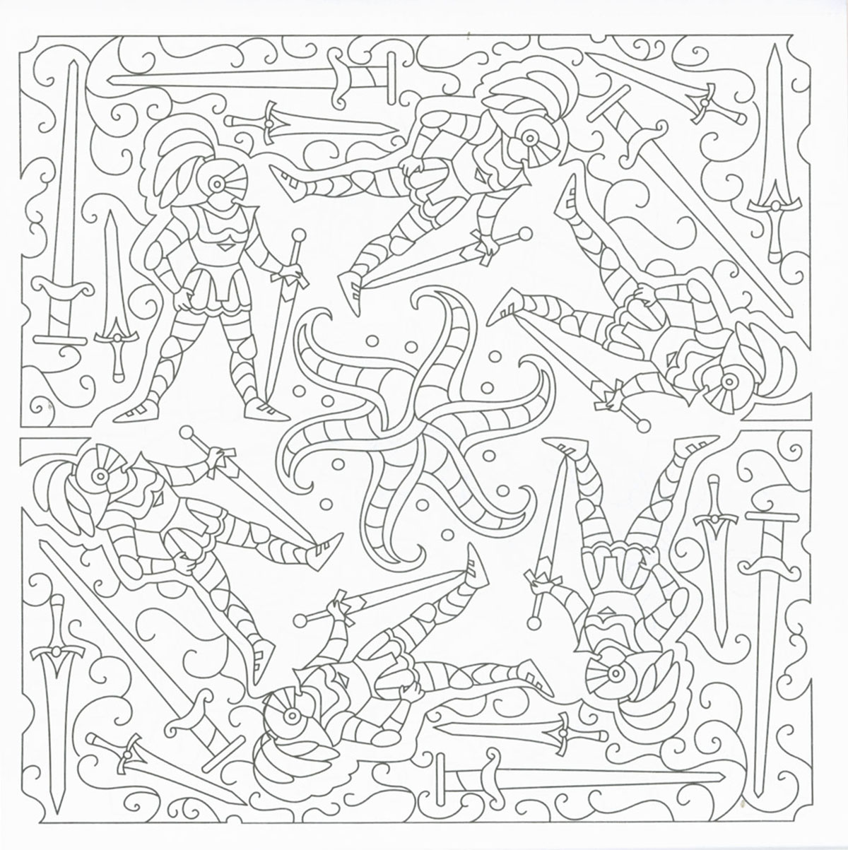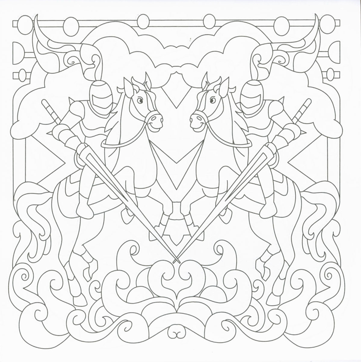 Recrea el mundo de la caballería con los diseños y patrones geométricos de este original libro para colorear.