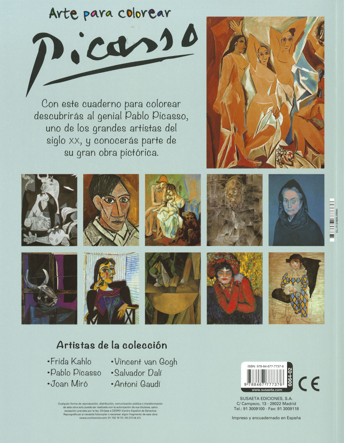 Con este cuaderno para colorear descubrirás al genial Pablo Picasso, uno de los grandes artistas del siglo XX, y conocerás parte de su gran obra pictórica. Abre sus páginas y llena de color los finos detalles de cada pintura, siguiendo el modelo del autor.