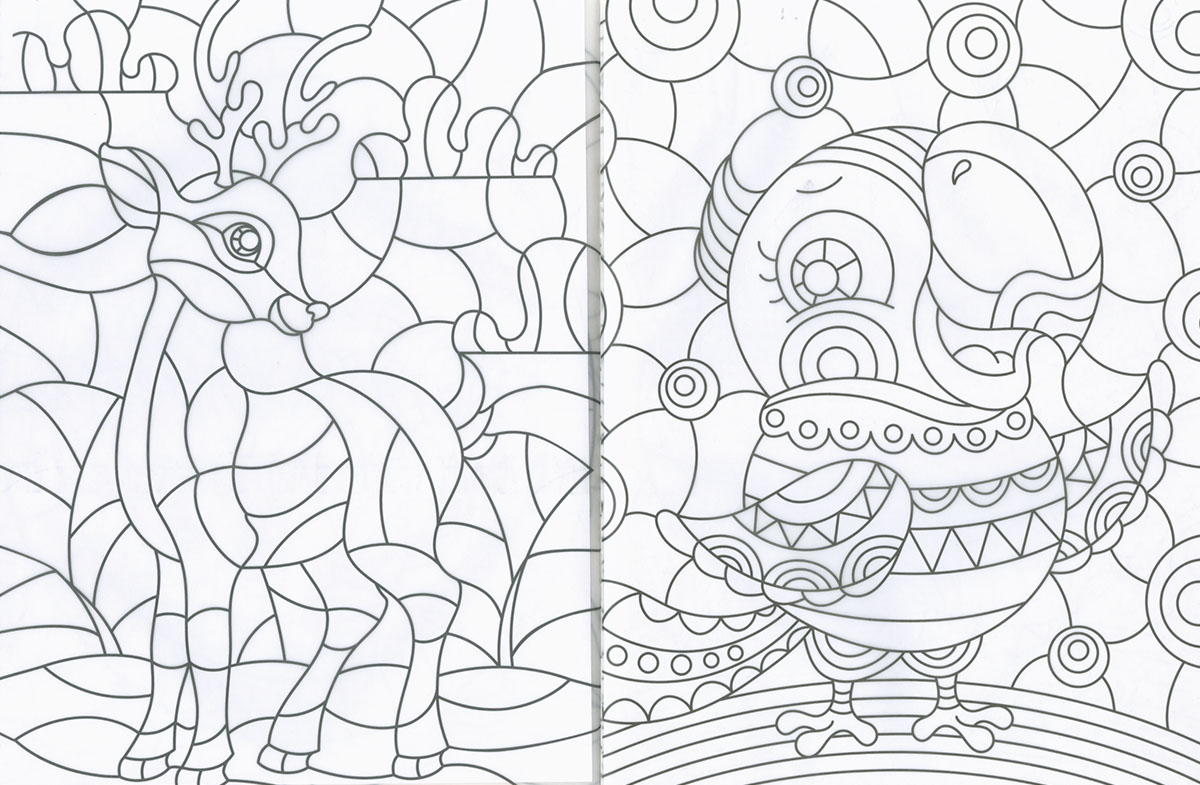 Decora tus ventanas con luminosas ilustraciones coloreando estas láminas de papel transparente que dejan pasar la luz. Sus dibujos de animales, compuestos de diferentes piezas para poder darles distintos tonos e intensidades, brillarán en el cristal como si fuera una original vidriera. Un libro que a los niños les encantará colorear.