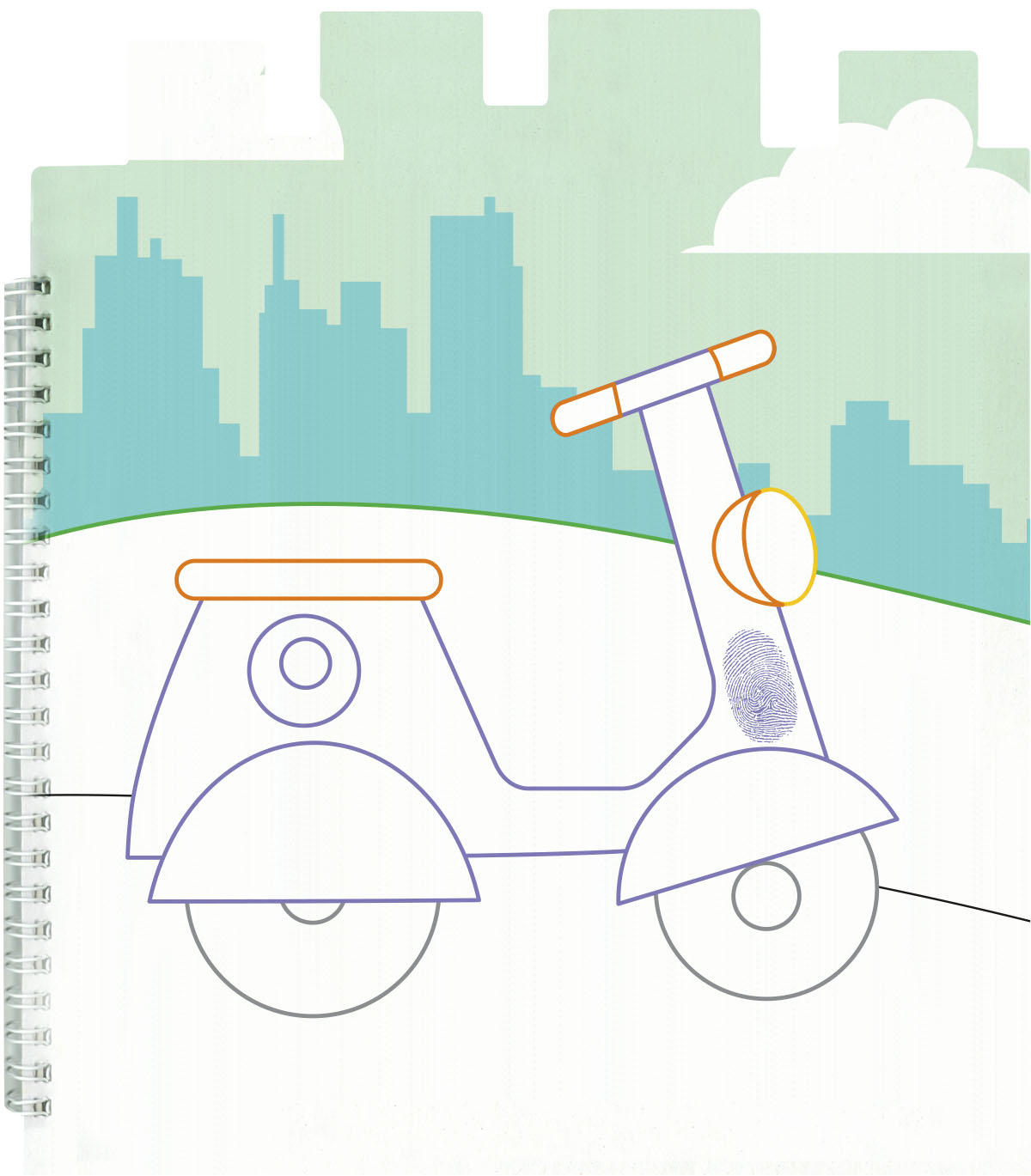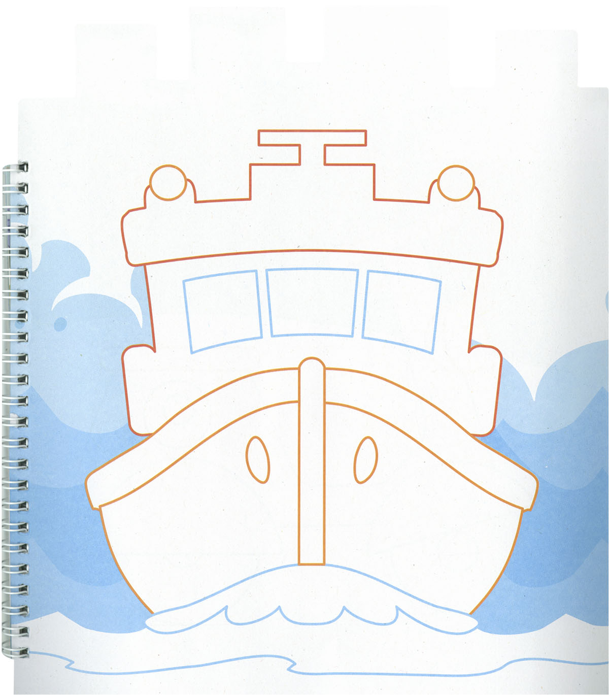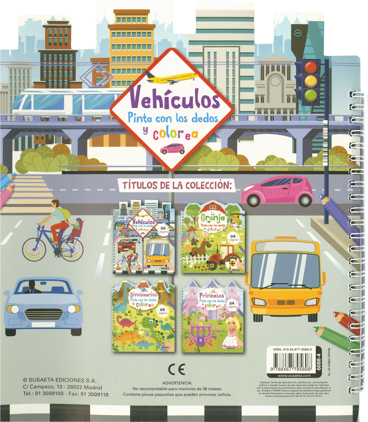 Encuadernación:  Cartulina plastificada brillo y troquelada con espiral, tiene pintura de dedos y 6 rotuladores