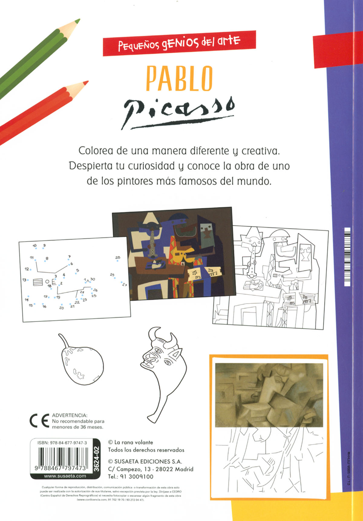 Acércate al arte de Picasso con este libro que te permitirá interactuar con sus obras. Colorea, completa y aprende sobre el genial artista, y disfruta de una nueva manera de conocer el arte.