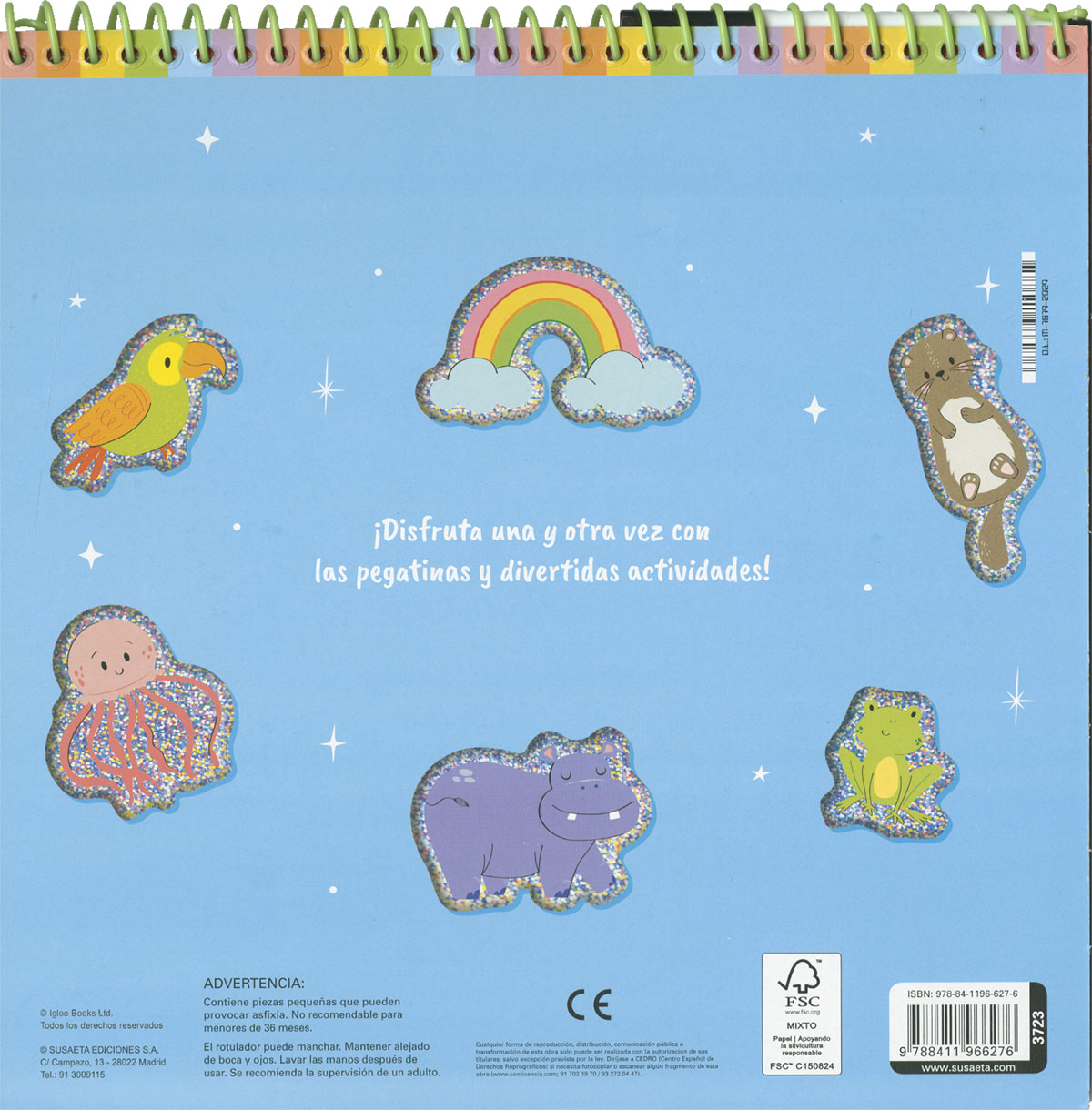 Disfruta con las pegatinas y las divertidas actividades de este libro. Incluye pegatinas burbuja y acolchadas reutilizables, y un rotulador que se borra. Además, el libro tiene asa para que puedas llevarlo contigo adonde quieras. Juega, pega... ¡y empieza otra vez!