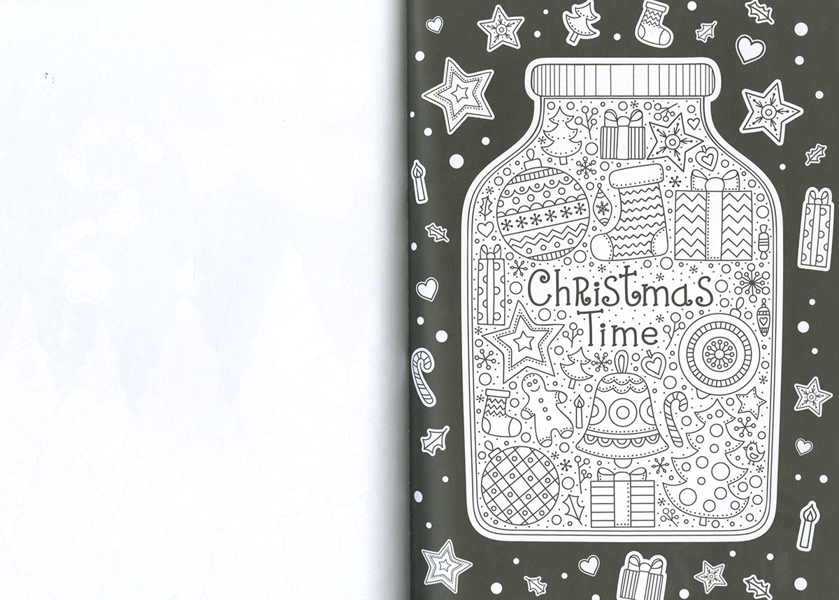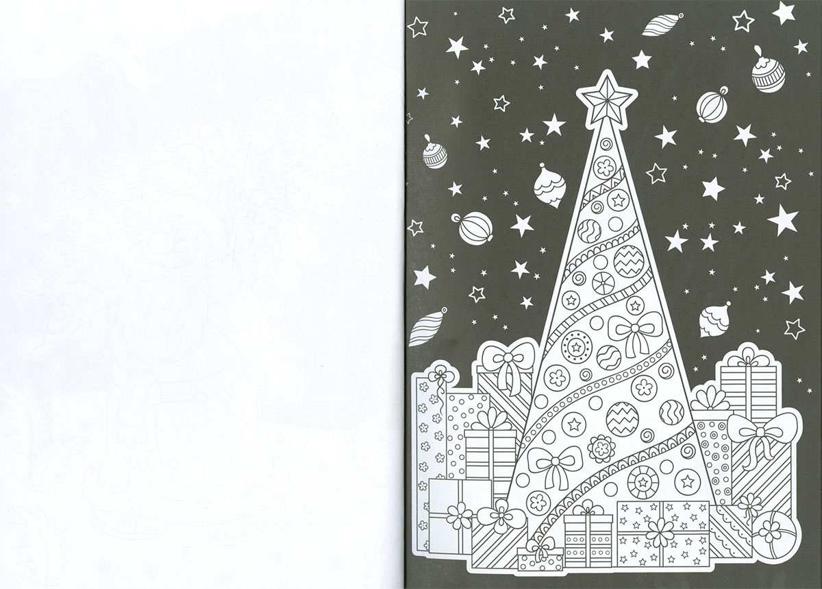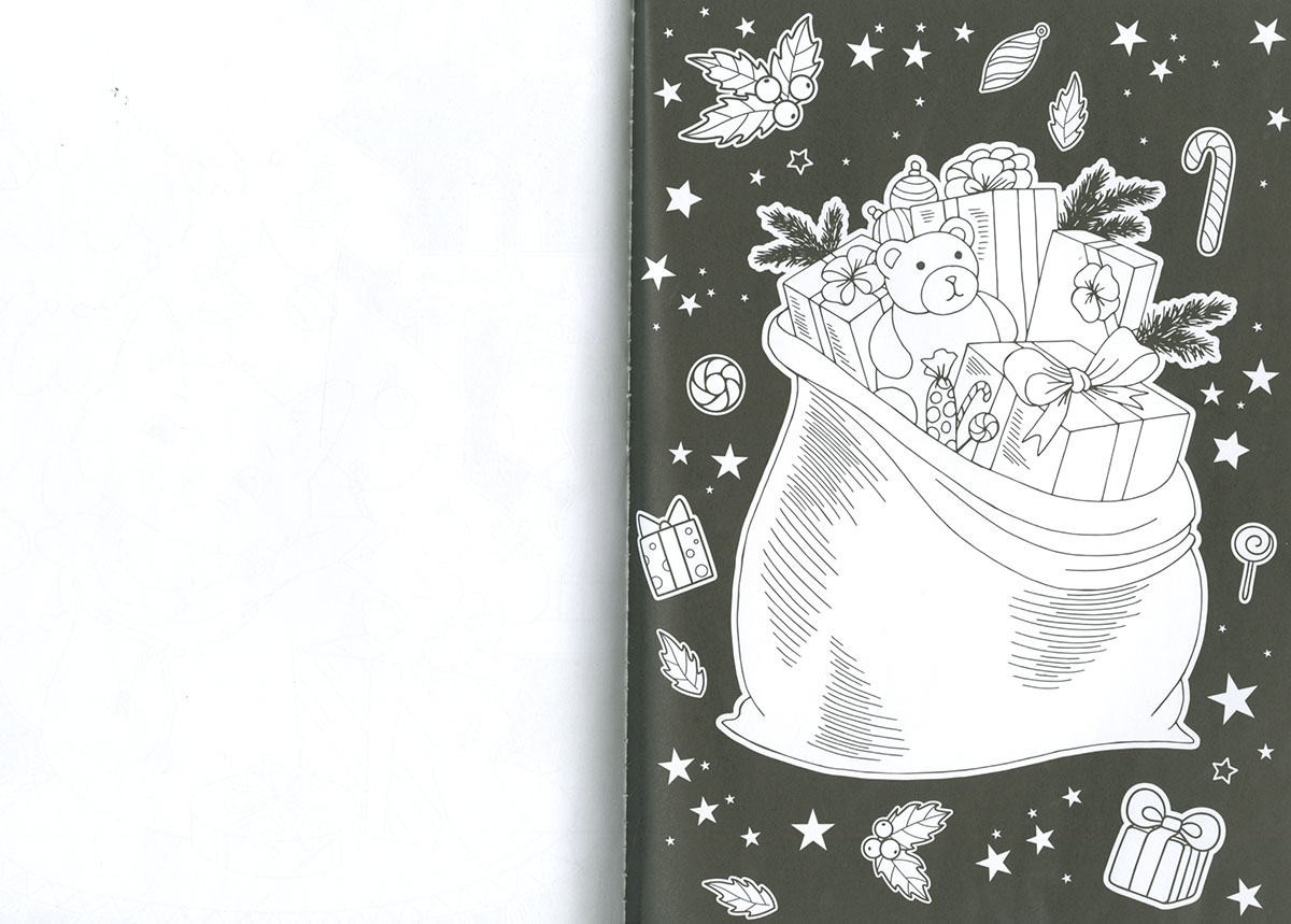Diviértete pintando este libro de colorear con los rotuladores metálicos que se incluye, y llena de oro y plata las escenas navideñas.