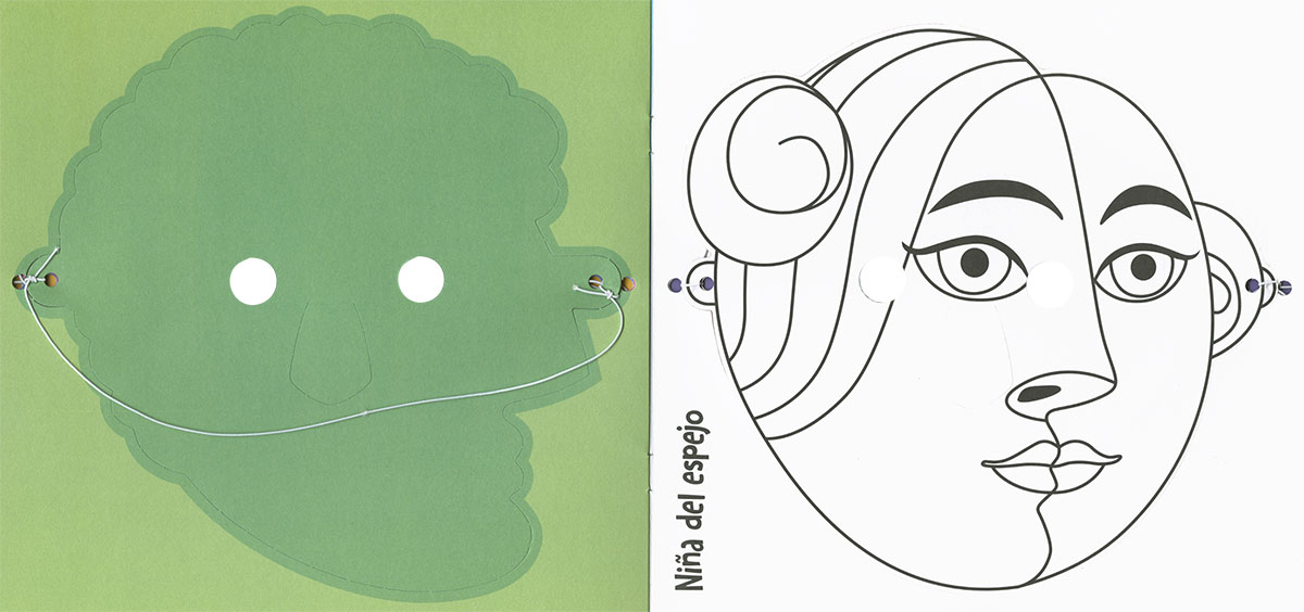Encuadernación:  Cartulina plastificada brillo, interior con 6 máscaras precortadas con goma elástica