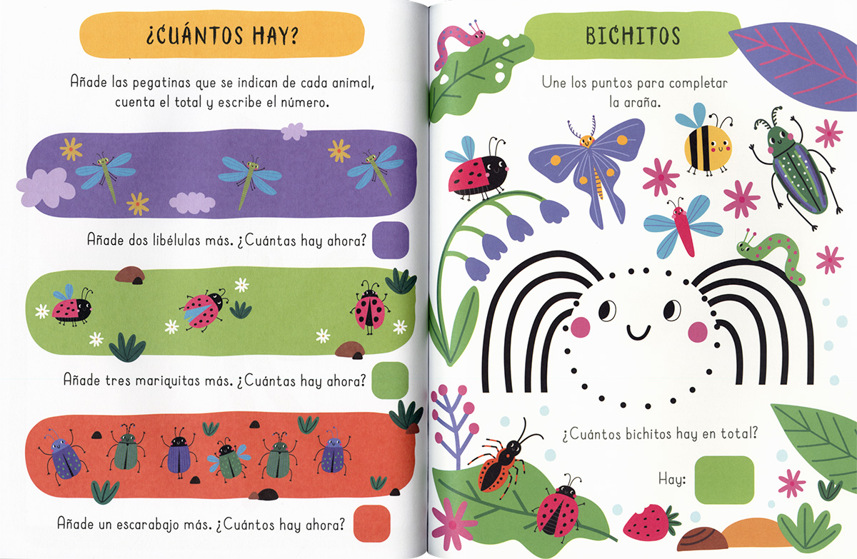 Encuadernación:  Tapa blanda con acabado en mate y brillos. Dos páginas de pegatinas.