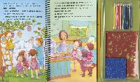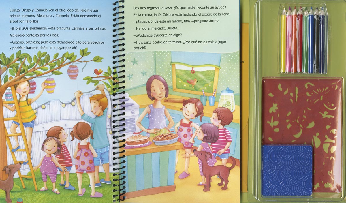 Un cuento y todo lo que necesitas para convertirte en un pequeño dibujante: lápices de colores, plantillas, planchas de texturas y láminas para que las decores siguiendo las instrucciones.