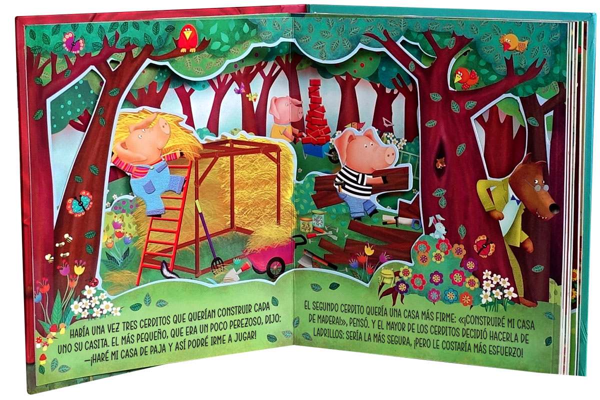 Disfruta del cuento de "Los tres cerditos" y juega a representarlo con tus amigos con este fantástico libro desplegable.