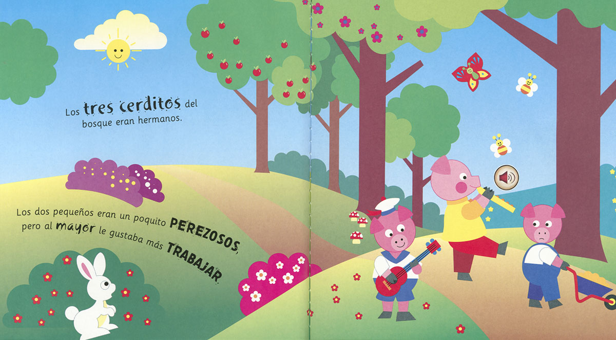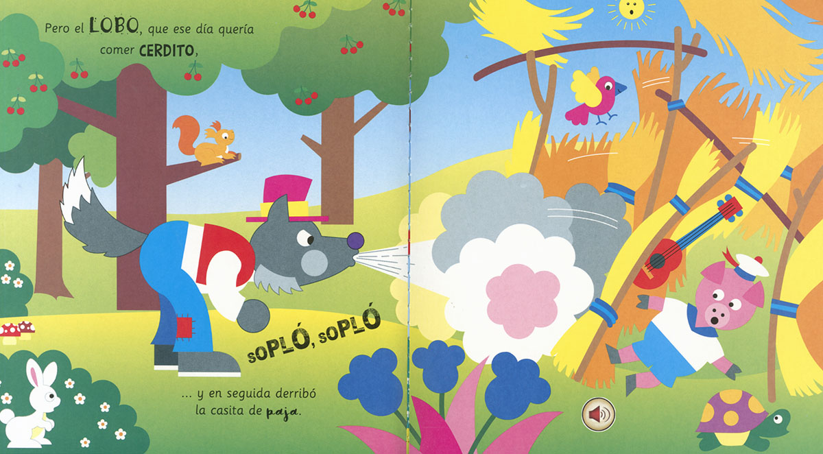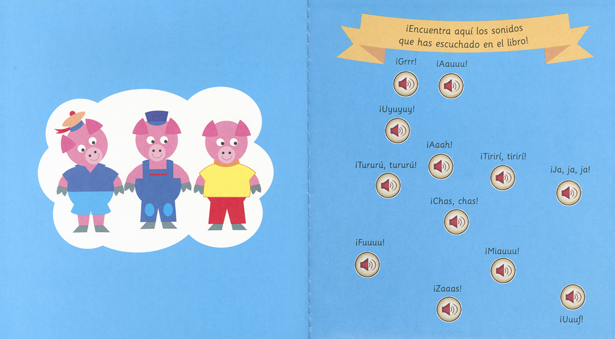 Vive las aventuras de LOS TRES CERDITOS y escucha los sonidos del cuento pulsando cada botón. ¡Lee y diviértete!