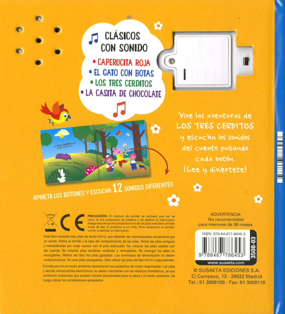 Encuadernación:  Cartoné con cubierta plastificada brillo, con 12 pulsadores musicales