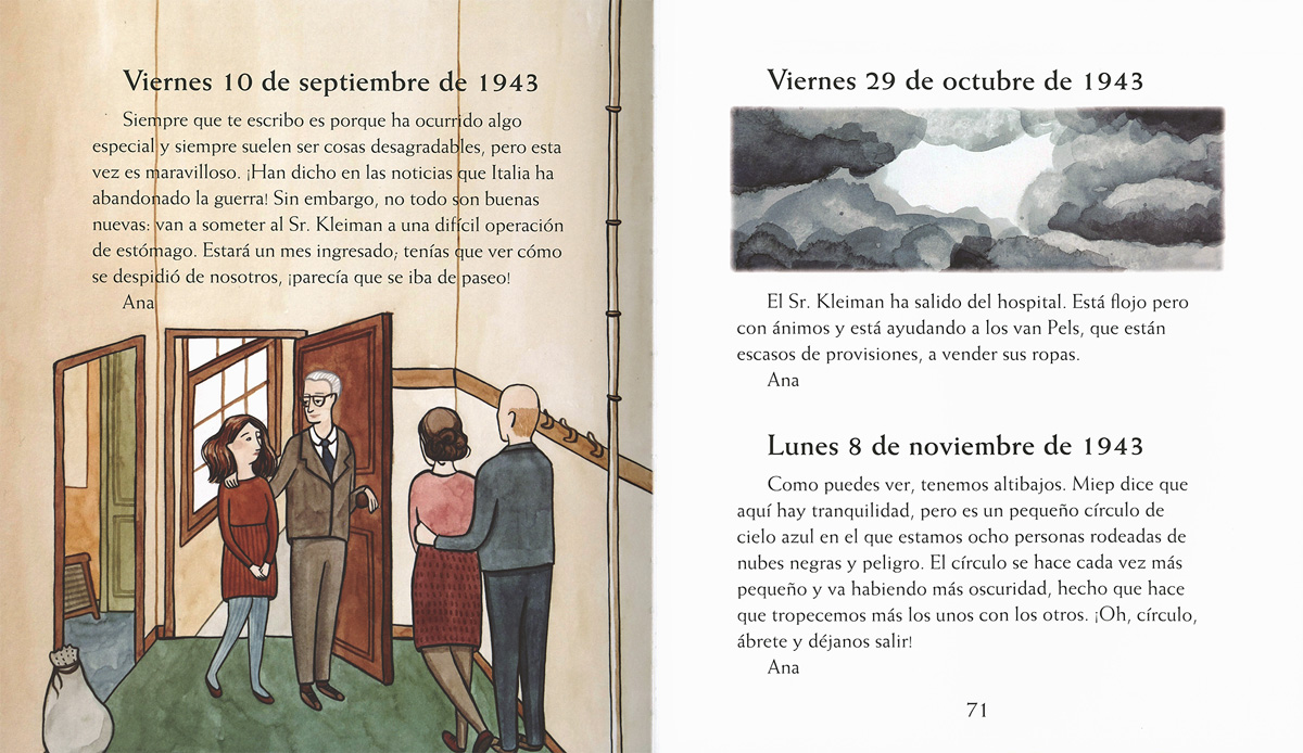 Ana Frank fue una niña judía que vivió escondida de los alemanes junto con su familia durante casi dos años y medio. En ese tiempo, se dedicó a escribir un diario en el que relató sus vivencias y sentimientos. Ana murió en un campo de concentración, pero su padre publicó el diario años más tarde y cumplió su sueño de convertirse en escritora. A día de hoy, es uno de los libros más leídos en todo el mundo.