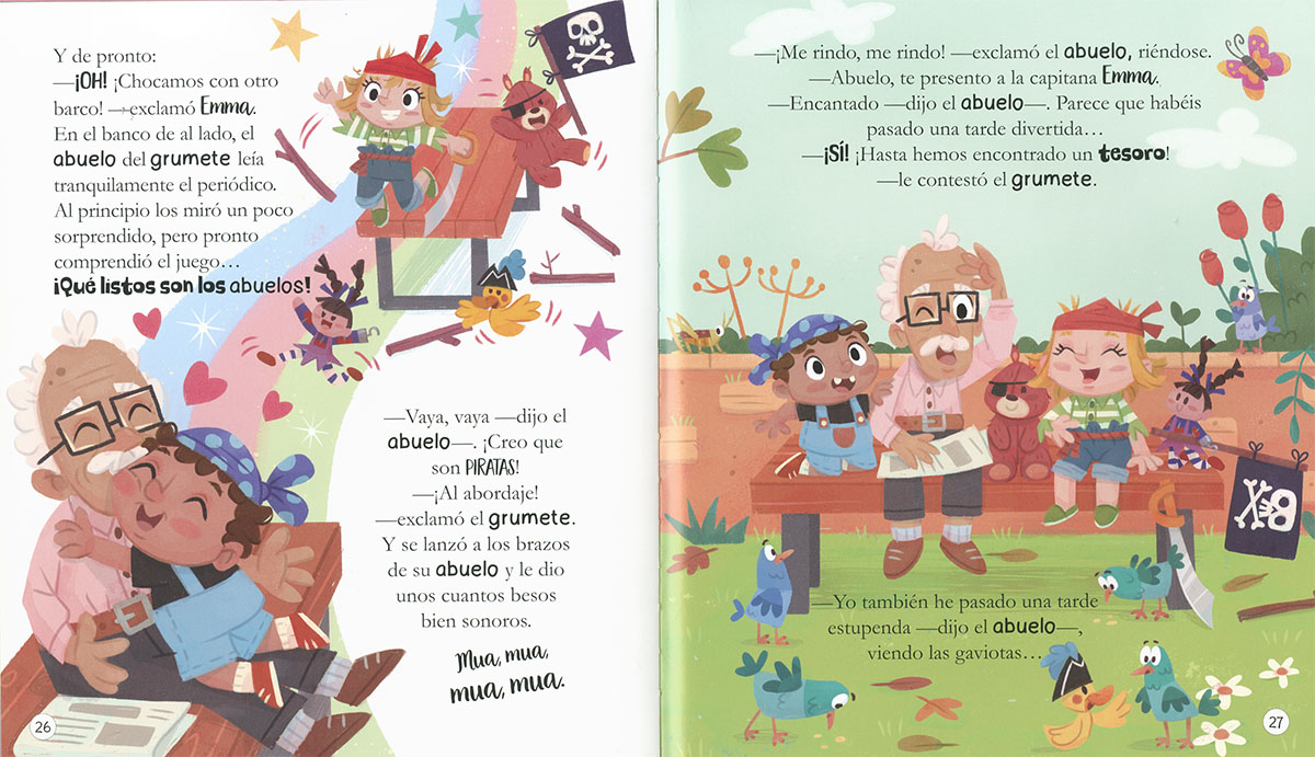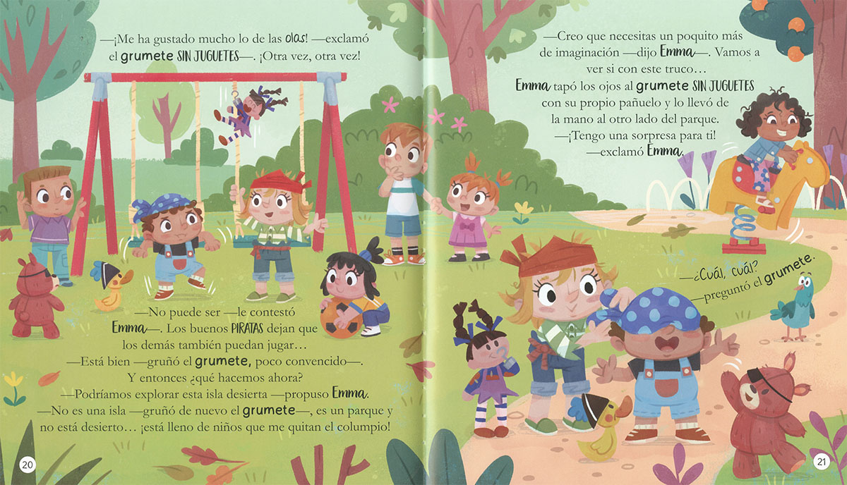 Una tarde, Emma y sus pequepiratas fueron al parque y se llevaron una bolsa enorme con todo lo que necesitaban para pasar una tarde de parque perfecta. Allí conocieron al pequeño Álvaro, que se convirtió ¡en un gran grumete! Además, entre todos encontraron un tesoro, ¿quieres descubrirlo tú también? Un gran libro ilustrado a todo color para los piratas más aventureros.