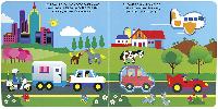 Nos encanta viajar en todos los medios de transporte. ¿Cuántos conoces tú? En este libro, encontrarás un avión, un coche, un tren y un barco. Juega con los vehículos y encájalos donde corresponda mientras lees la historia.