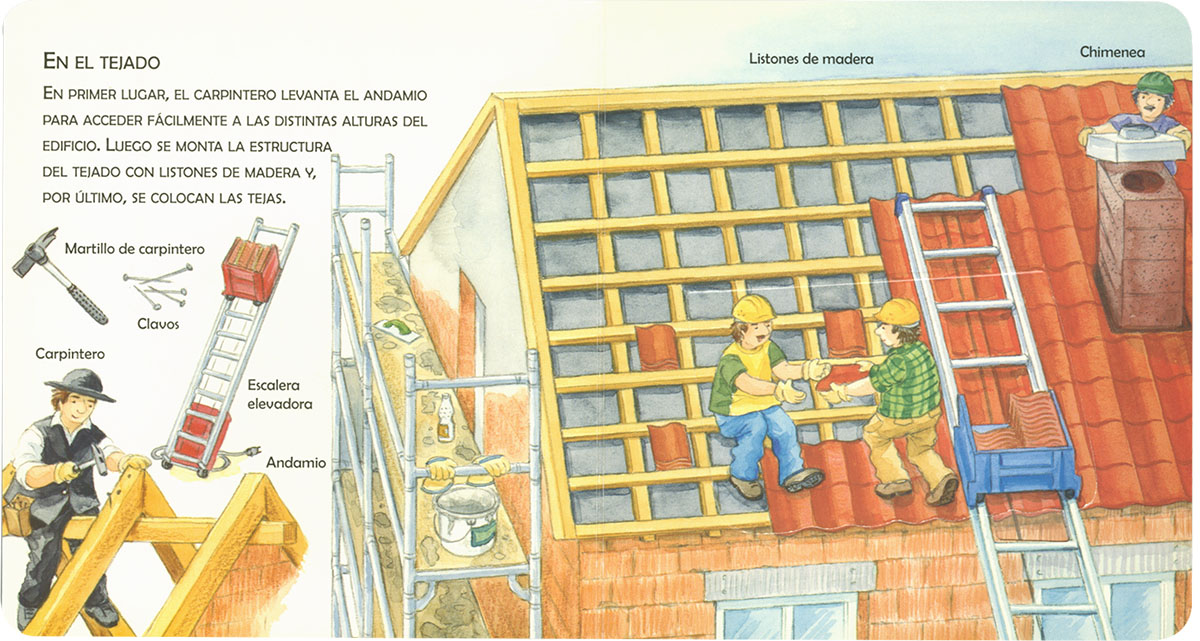 Si quieres saber quién trabaja en la obra, con este diccionario visual te será muy fácil. ¡Mira debajo de las ventanas y aprende un montón de cosas sobre los obreros y las fabulosas máquinas que utilizan!