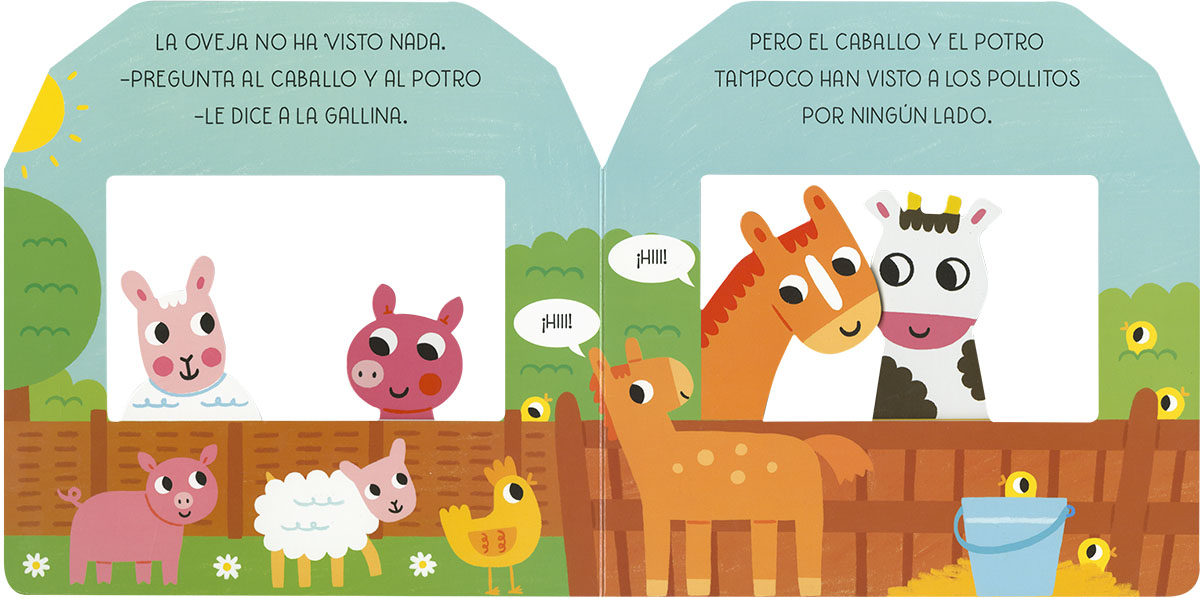 Bienvenido! Los animales de la granja te están esperando. Conoce al cerdo, a la oveja, al caballo, a la vaca... Y busca con ellos los cinco pollitos que ha perdido la gallina. Un simpático libro de cartón troquelado donde cada página tiene su protagonista.