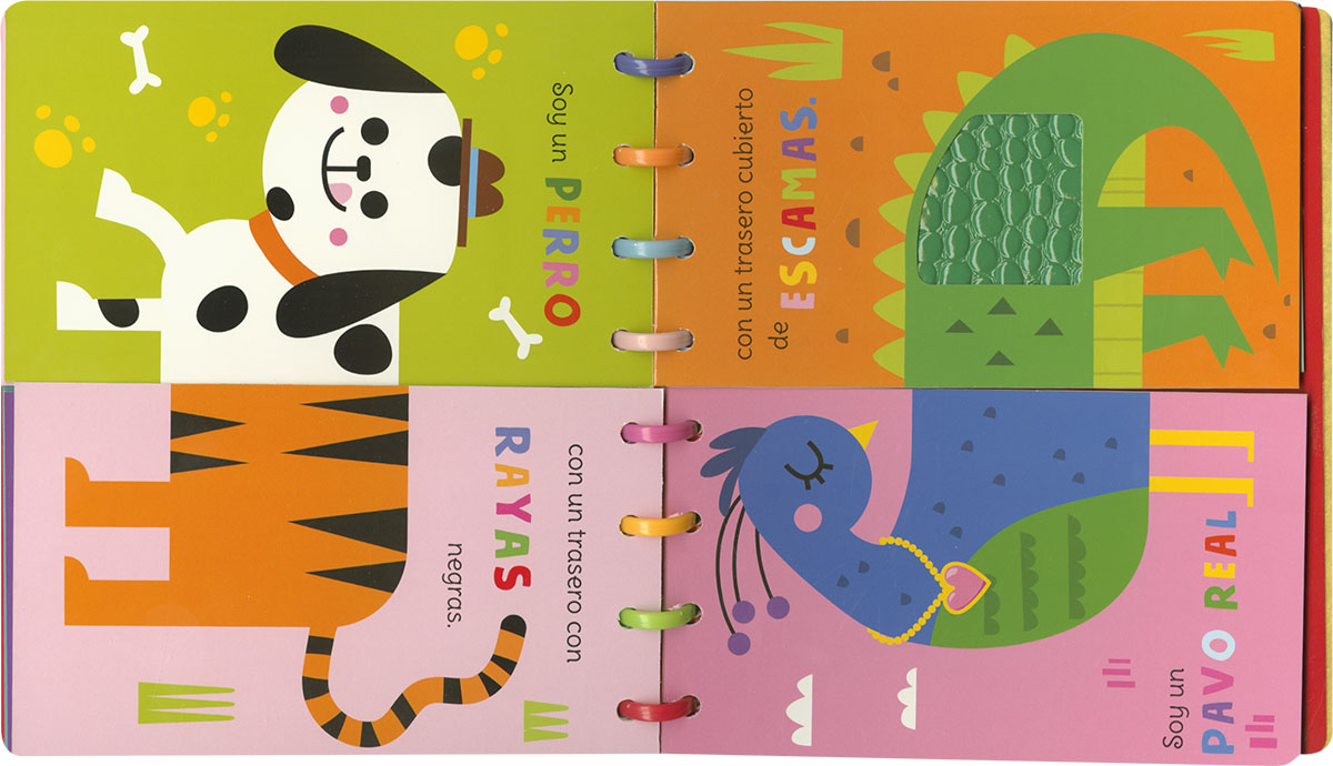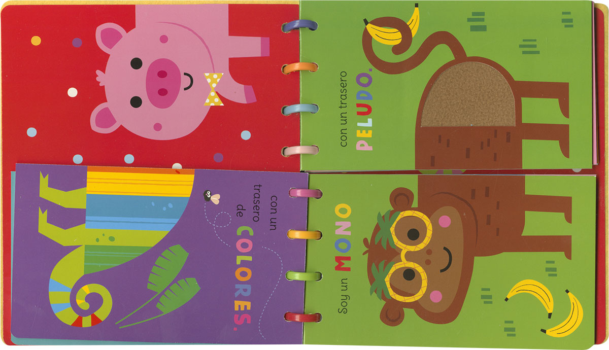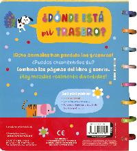 Este libro de páginas de fieltro y cartulina es un libro muy loco... Ocho animales han perdido su trasero. ¿Dónde estarán? Combina las mitades de las páginas para encontrarlos; tocando las texturas de cada culete te resultará más fácil, ¡y quizá descubras nuevos animales divertidos!