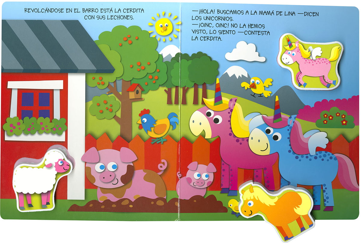 La ovejita Lina se ha perdido y los unicornios le ayudan a buscar a su mamá. Sigue la historia y encaja cada pieza donde corresponda.