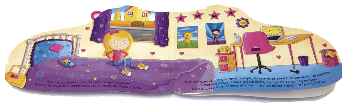 Sabes atarte los cordones? Con este libro en forma de zapatilla puedes aprender. Observa cómo lo hace Ana y sigue las instrucciones, practica con el cordón y... ¡podrás hacerlo tú solo!